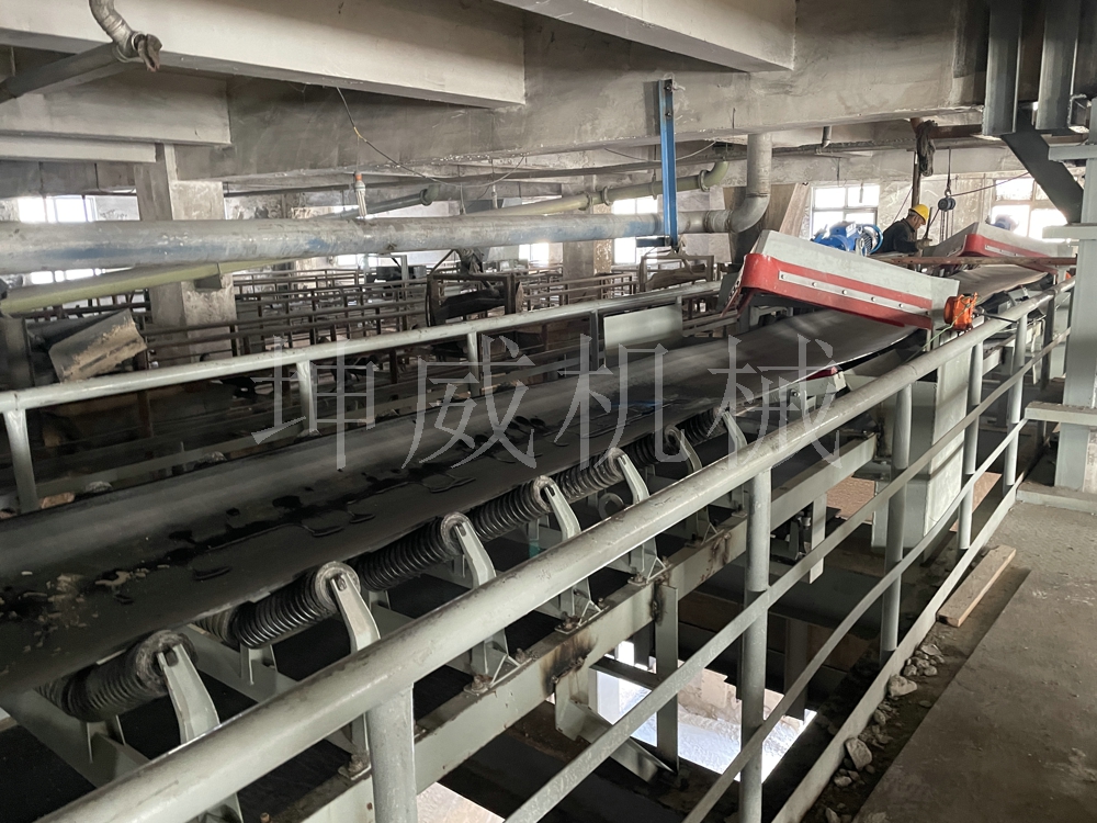河南坤威機(jī)械在湖北黃石的施工現(xiàn)場,該皮帶輸送機(jī)為帶犁式卸料器的機(jī)型,目前已經(jīng)安裝使用。